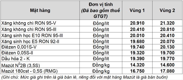 Theo thông báo từ Petrolimex, các mức giá bán lẻ mới cho từng loại xăng dầu như sau: