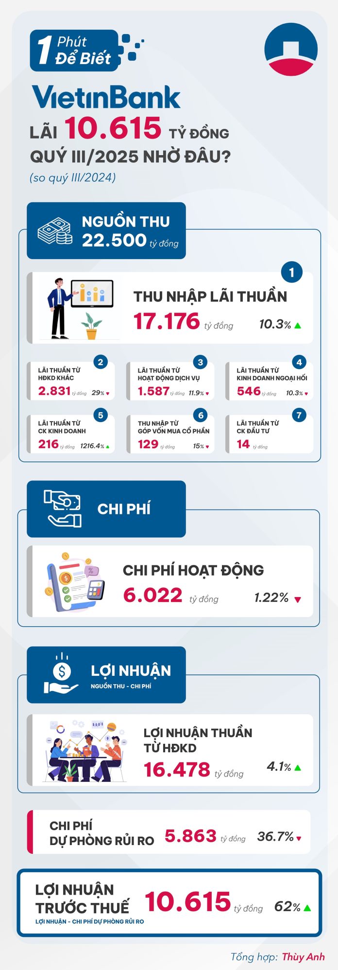 1 phút để biết VietinBank lãi 10.615 tỷ đồng quý III/2025 nhờ đâu