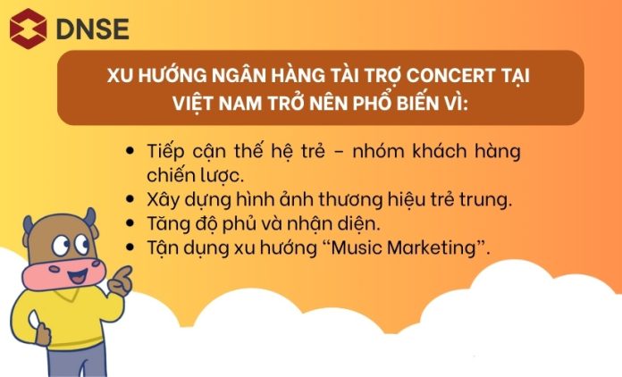 Trong những năm gần đây, xu hướng ngân hàng tài trợ concert tại Việt Nam đang trở thành một chiến lược marketing nổi bật, thu hút mạnh mẽ sự chú ý của Gen Z và Millennials. Đây không chỉ là cuộc đua thương hiệu, mà còn là cầu nối với tệp khách hàng trẻ và các nhà đầu tư tiềm năng. Bài viết dưới đây của DNSE sẽ phân tích chi tiết xu hướng này và đưa ra những gợi ý hành động cho nhà đầu tư.